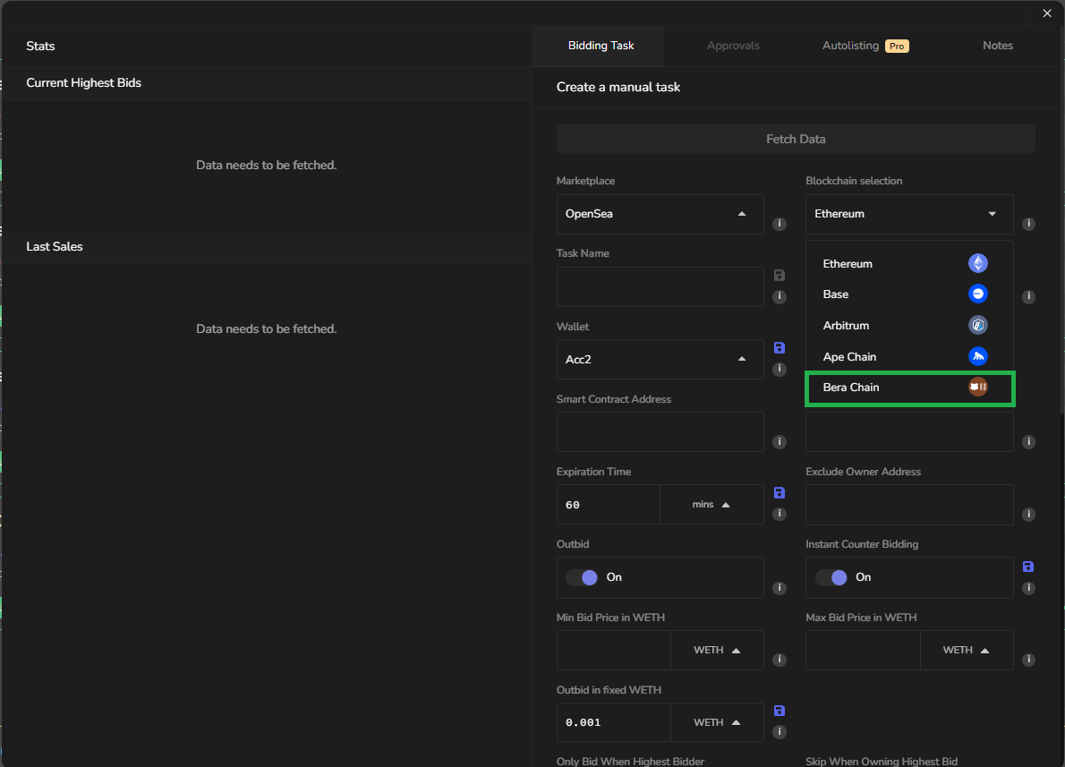 <figure><img src="https://156458129-files.gitbook.io/~/files/v0/b/gitbook-x-prod.appspot.com/o/spaces%2FUpGMSshbhuSUXHzoKrTn%2Fuploads%2FEJCTqM1LMFkBgkzuJr4e%2Fimage.png?alt=media&#x26;token=68ce449b-c234-4f65-b362-146cfd3ebd7a" alt=""><figcaption><p>Choosing Bera Chain to create a manual bidding task</p></figcaption></figure>