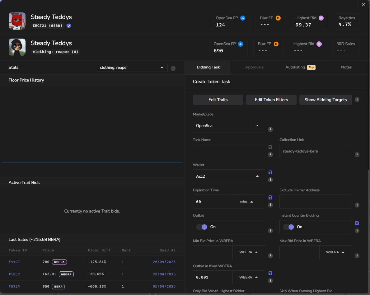 * And last step: do at least 1 manual bid on an OpenSea Bera collection to make sure all necessary contracts are approved for bidding automation.
