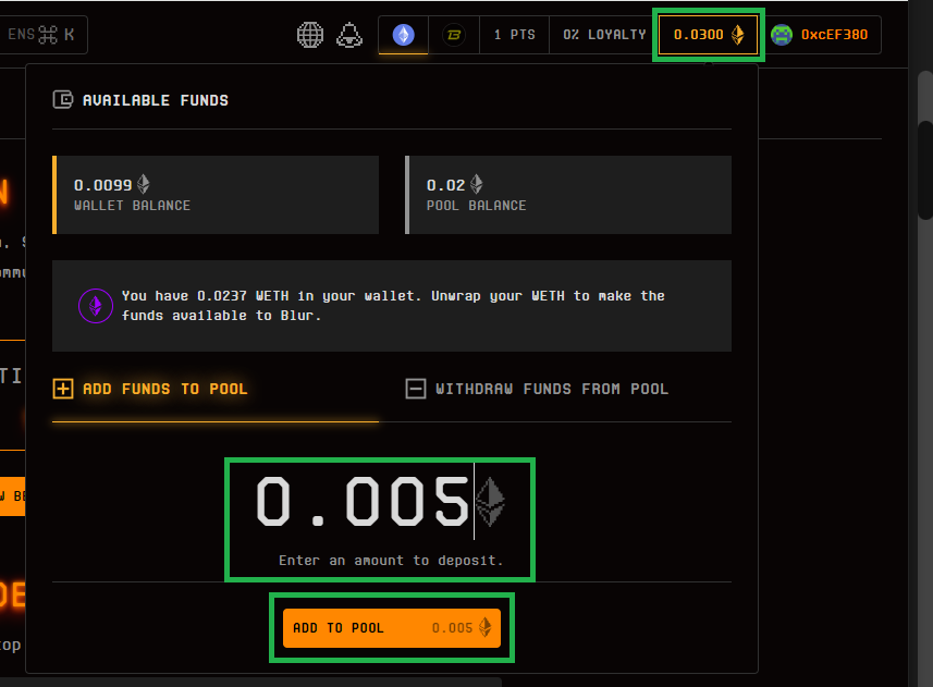 * For bidding you'll have to add some of your ETH to the [Blur BETH Pool](#add-eth-to-beth-pool-on-blur)
