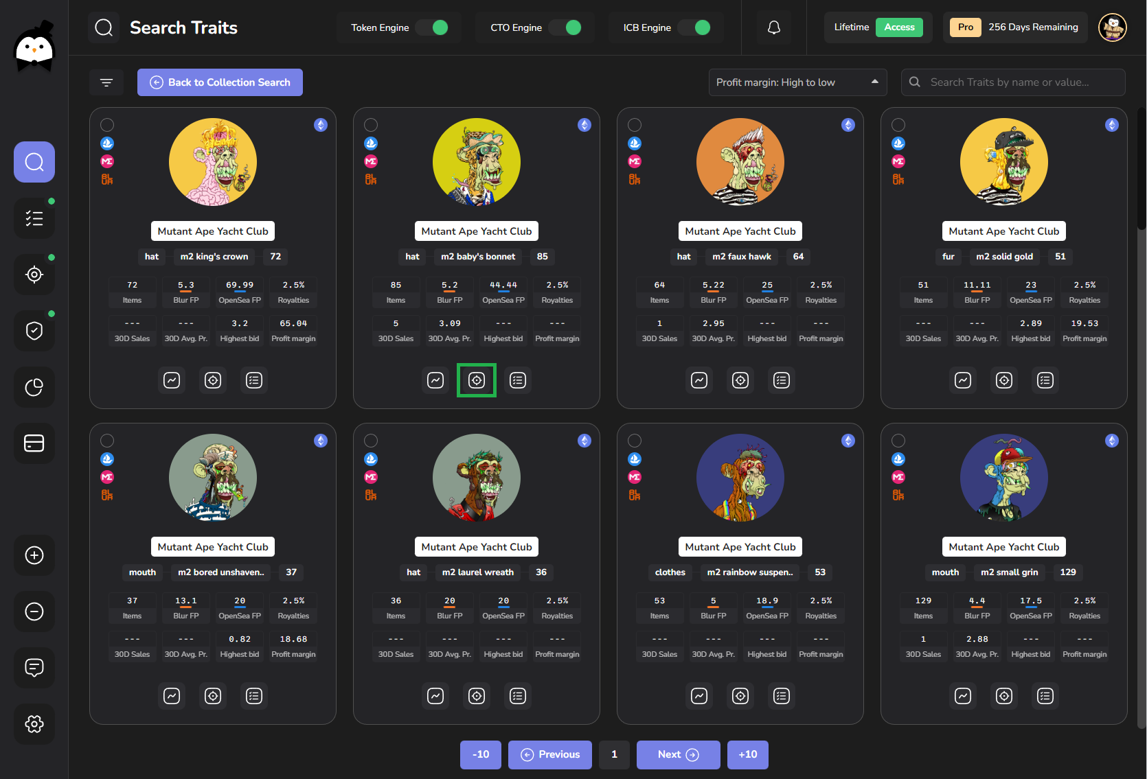 To start a Collection Trait Bidding task, you have to click on the very left icon "traits", which will open the trait overview.