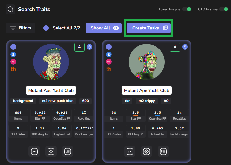 Collection Trait Bidding Tasks are used to create automated offers on all tokens of a specified collection trait.