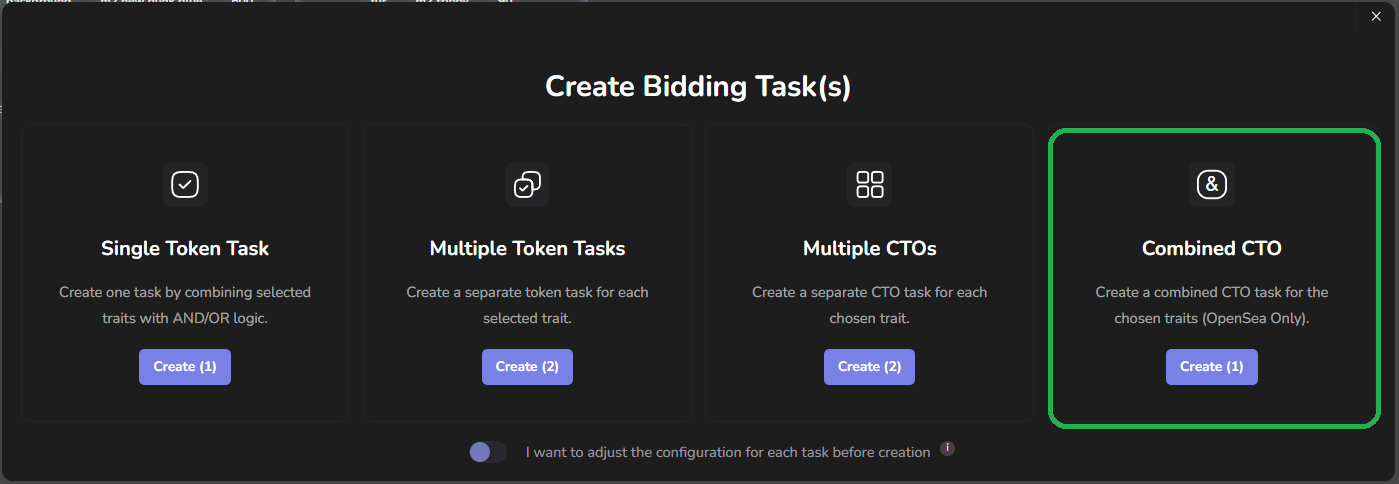 The **Combined CTO** option will appear to create your CTO bidding on all assets having all of the selected traits assigned. Butler will outbid the following bidding types as part of these special CTOs: