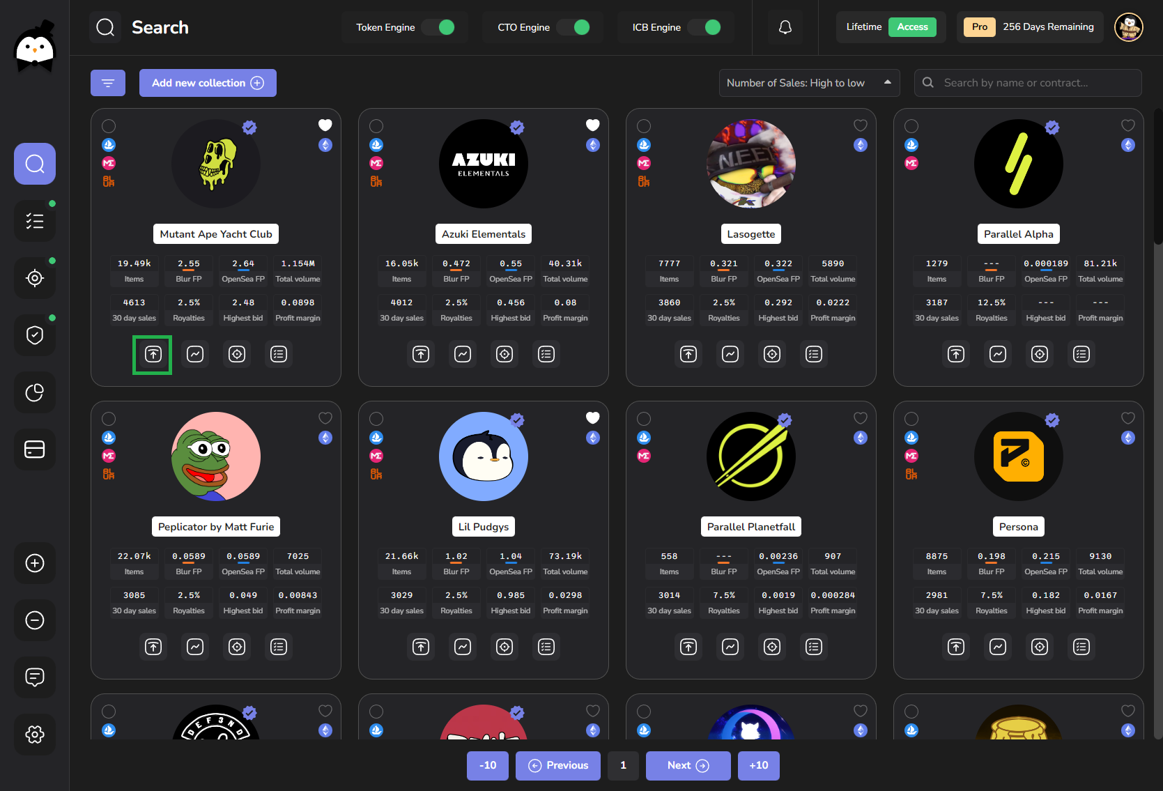 Available Marketplaces for each collection are highlighted on the top left of each collection.