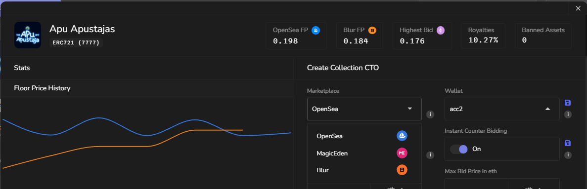 * With[ PRO Access](https://docs.nftbutler.io/nft-butler/products-and-services/pro-access) you can choose the target market place you want to do Bidding on: